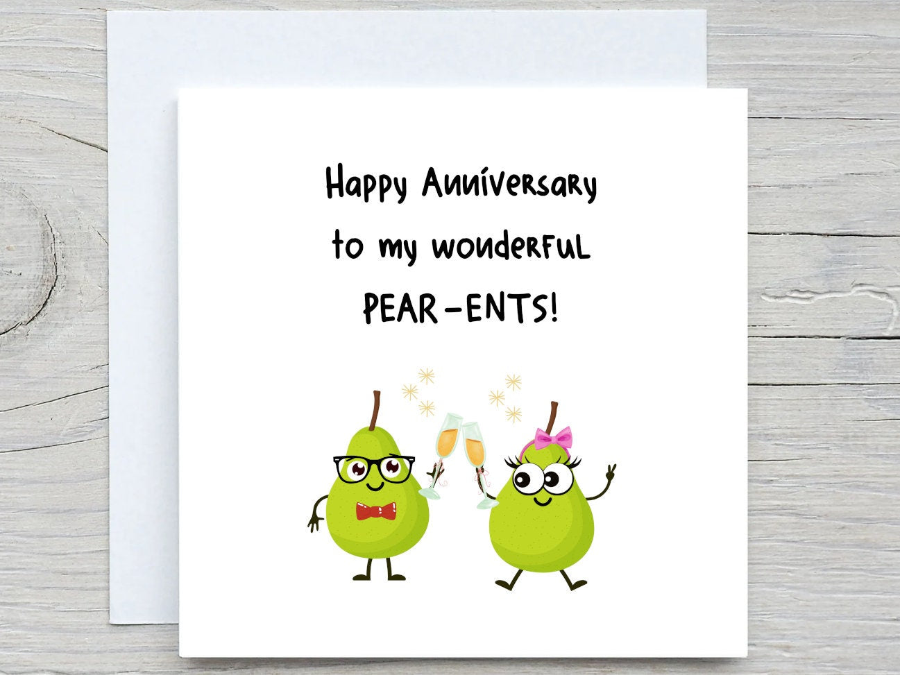 Happy Anniversary card, wonderful Pearents card, cute pear card, to Parents card, from son, from daughter, Parents anniversary card