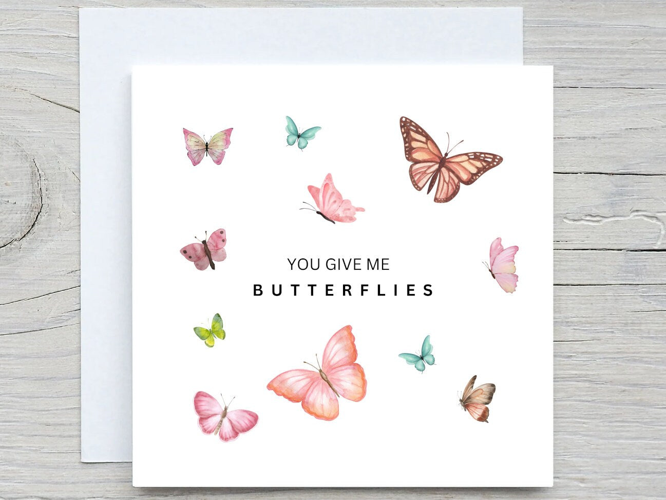 Love card, personalised cards, you give me butterflies, romantic card, i love you card, valentines day card, anniversary card