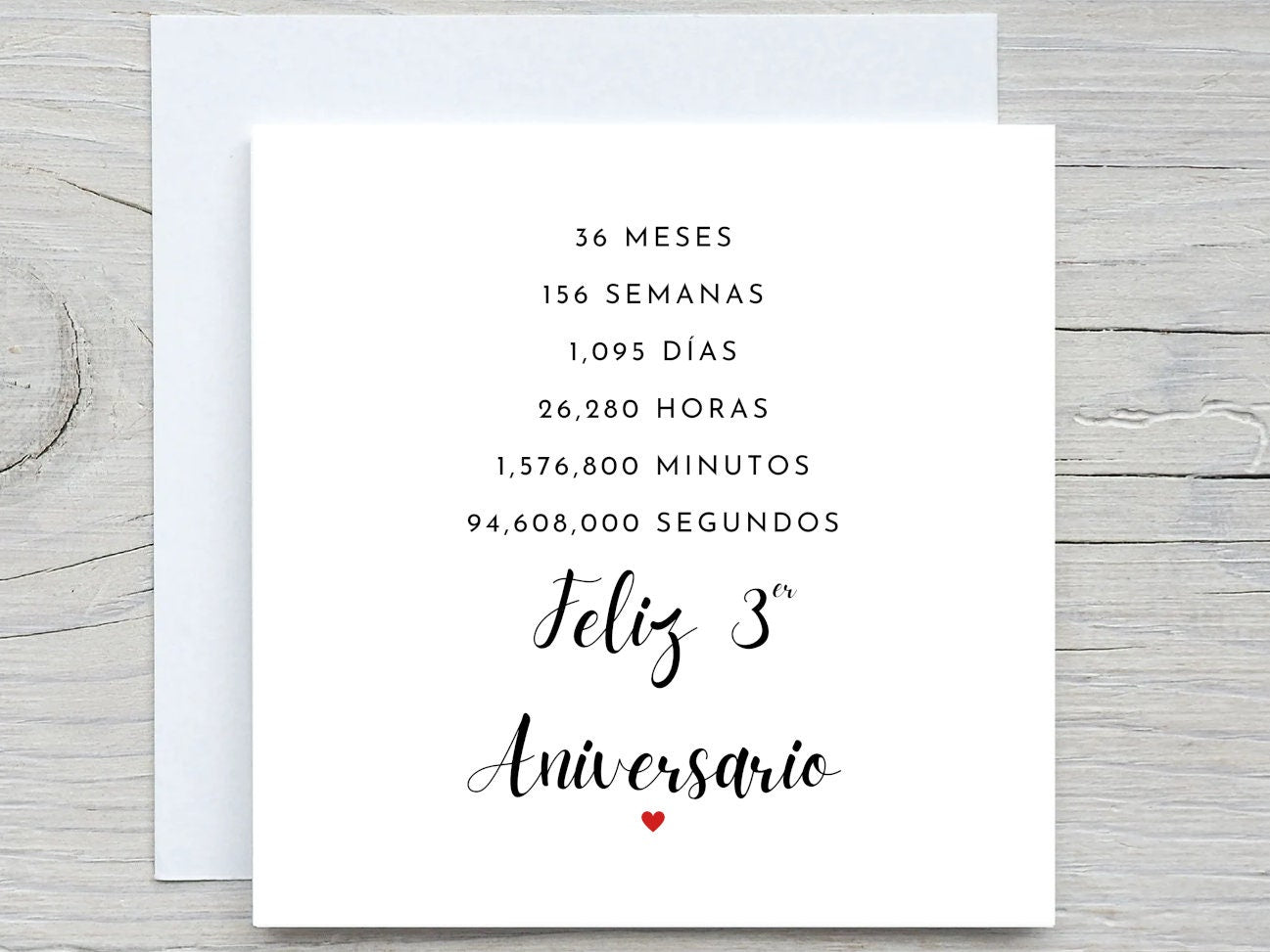 Spanish 3rd Anniversary Card, Personalised anniversary card, Third Anniversary card, Cute Anniversary Gift, 3 years wedding anniversary,