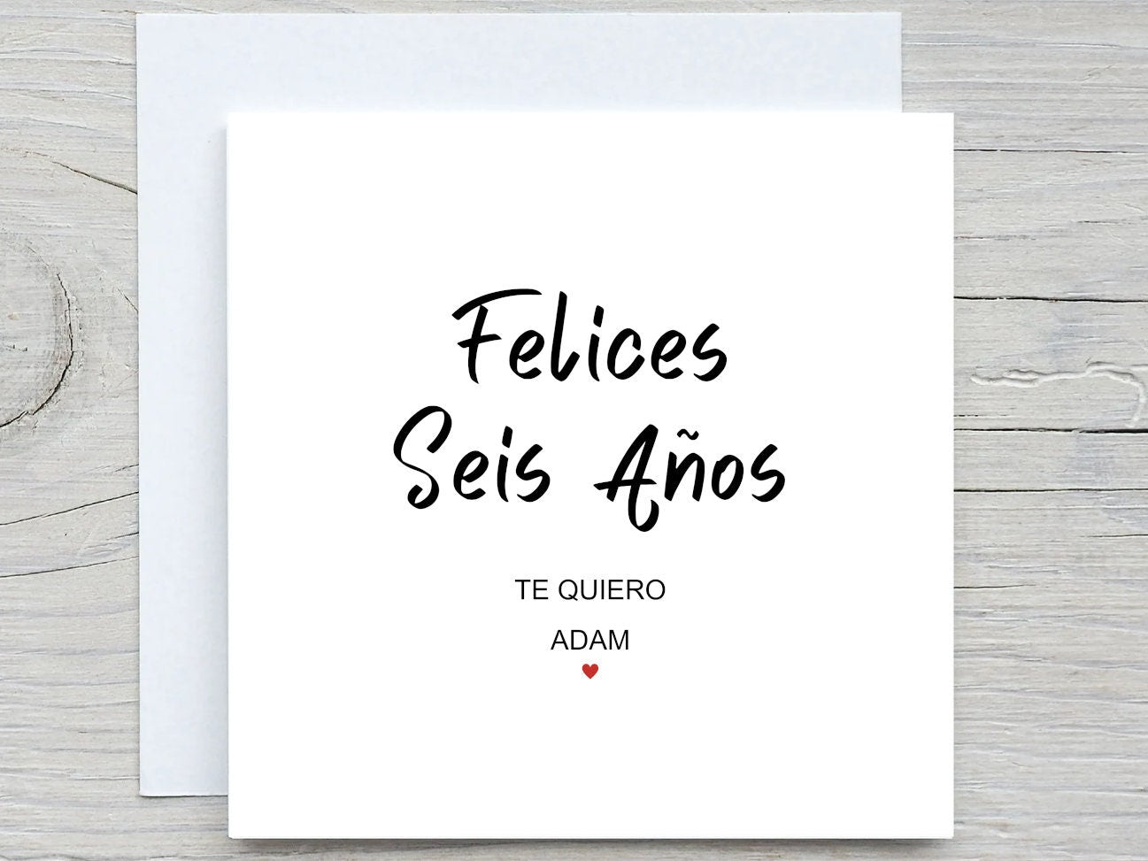 Spanish 6th Anniversary card, Felices 6 años ,sixth anniversary card, 6th anniversary card for partner, Anniversary gift