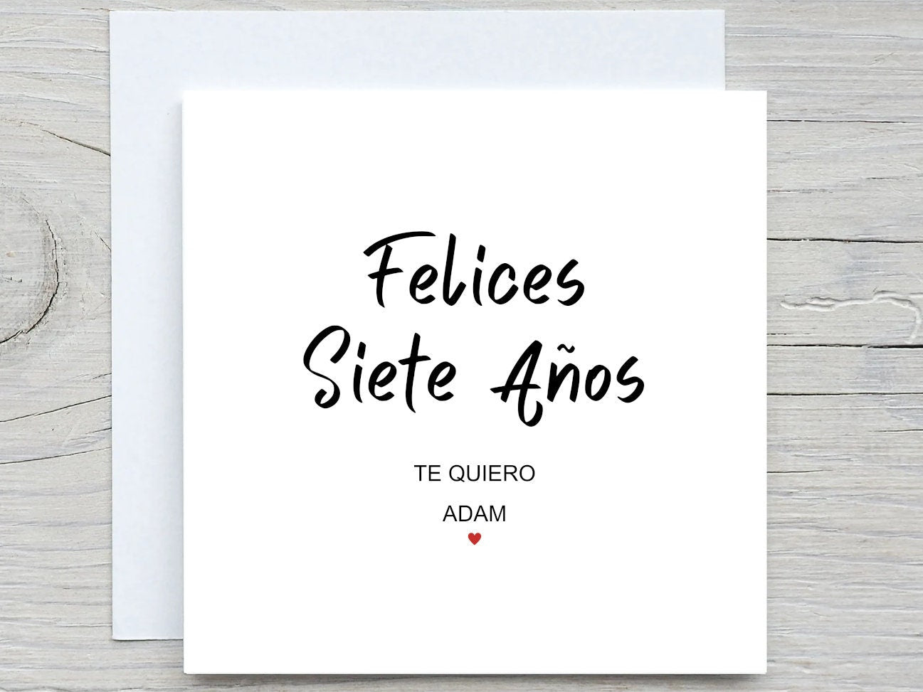Spanish 7th Anniversary card, Felices 7 años ,seventh anniversary card, 7th anniversary card for partner, Anniversary gift