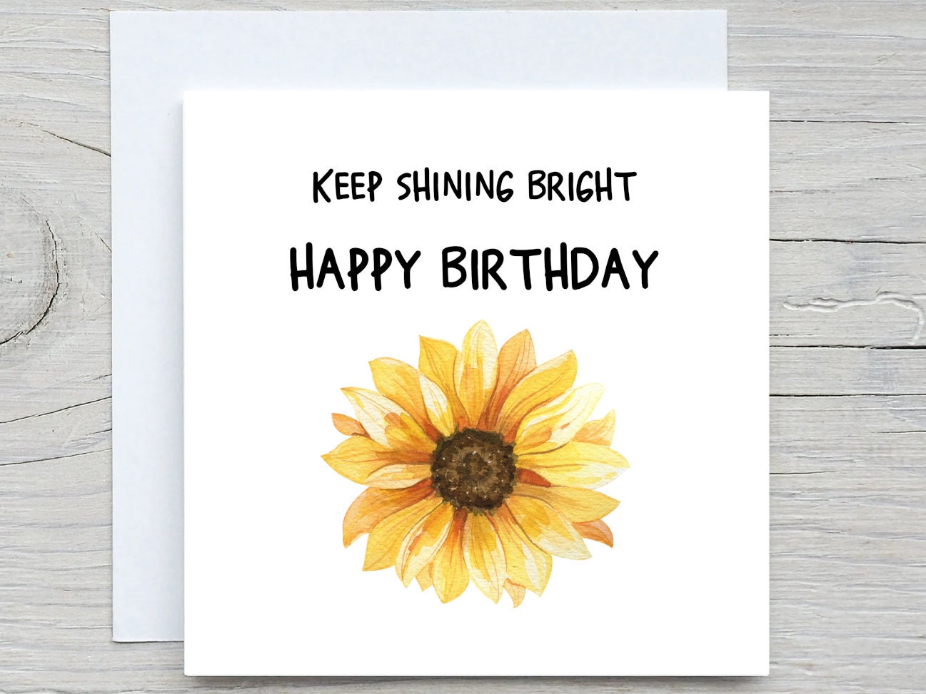 Floral birthday card, Keep shining Bright, birthday card, personalized card, Sunflower birthday card