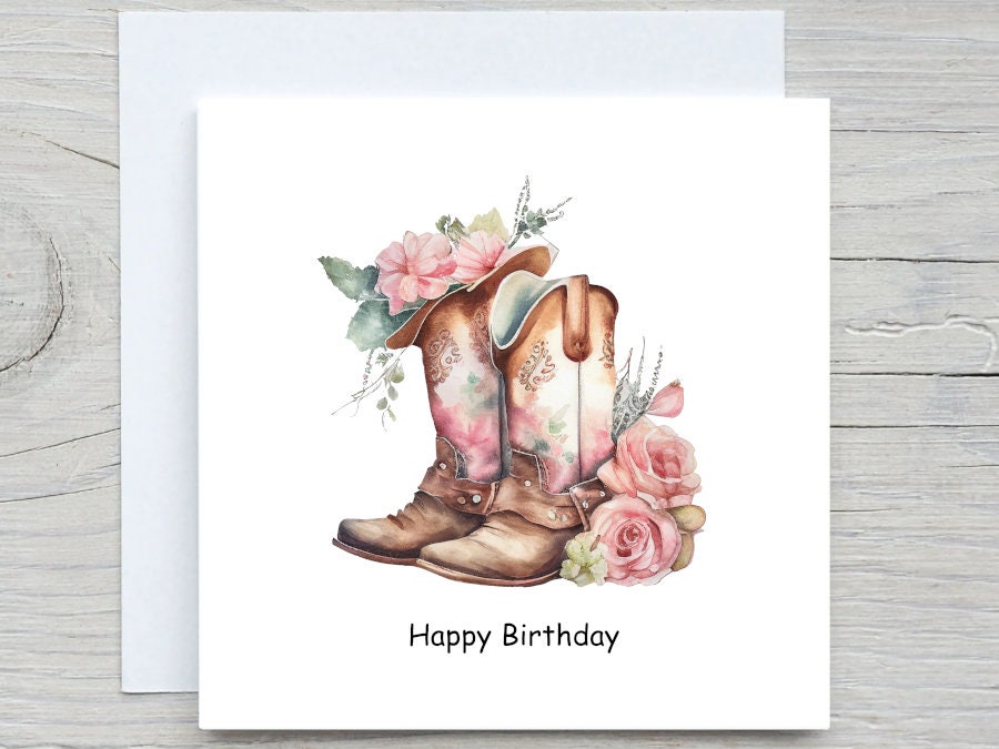Happy birthday card, Cow Girl birthday card, for a friend birthday, Cowgirl Birthday, Personalised Birthday card, Gift for Cow Girl, Boots