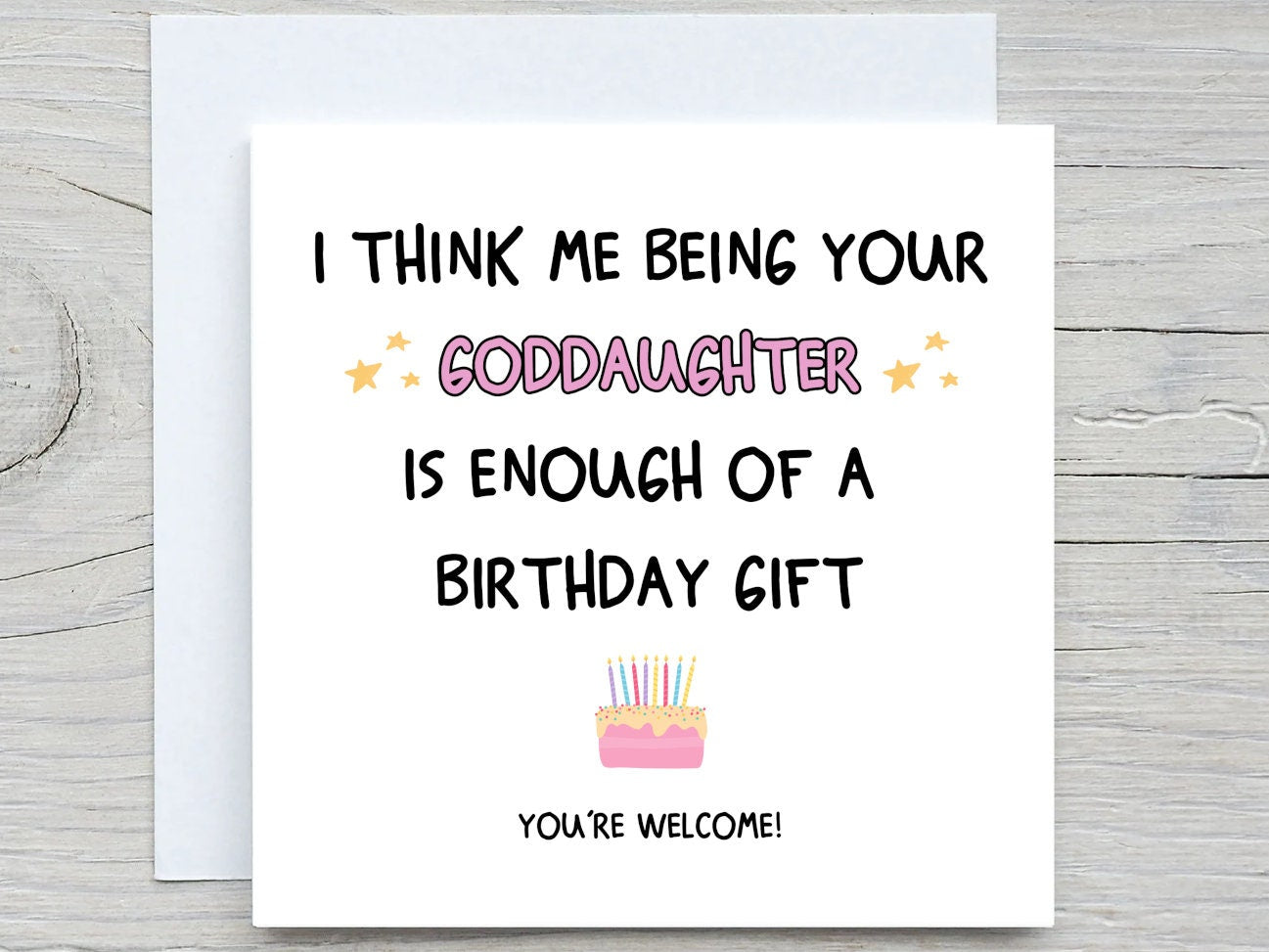 I Think Me Being Your Goddaughter Is Enough Of A Birthday Gift , Funny Birthday Card, Godmothers birthday, godfathers birthday