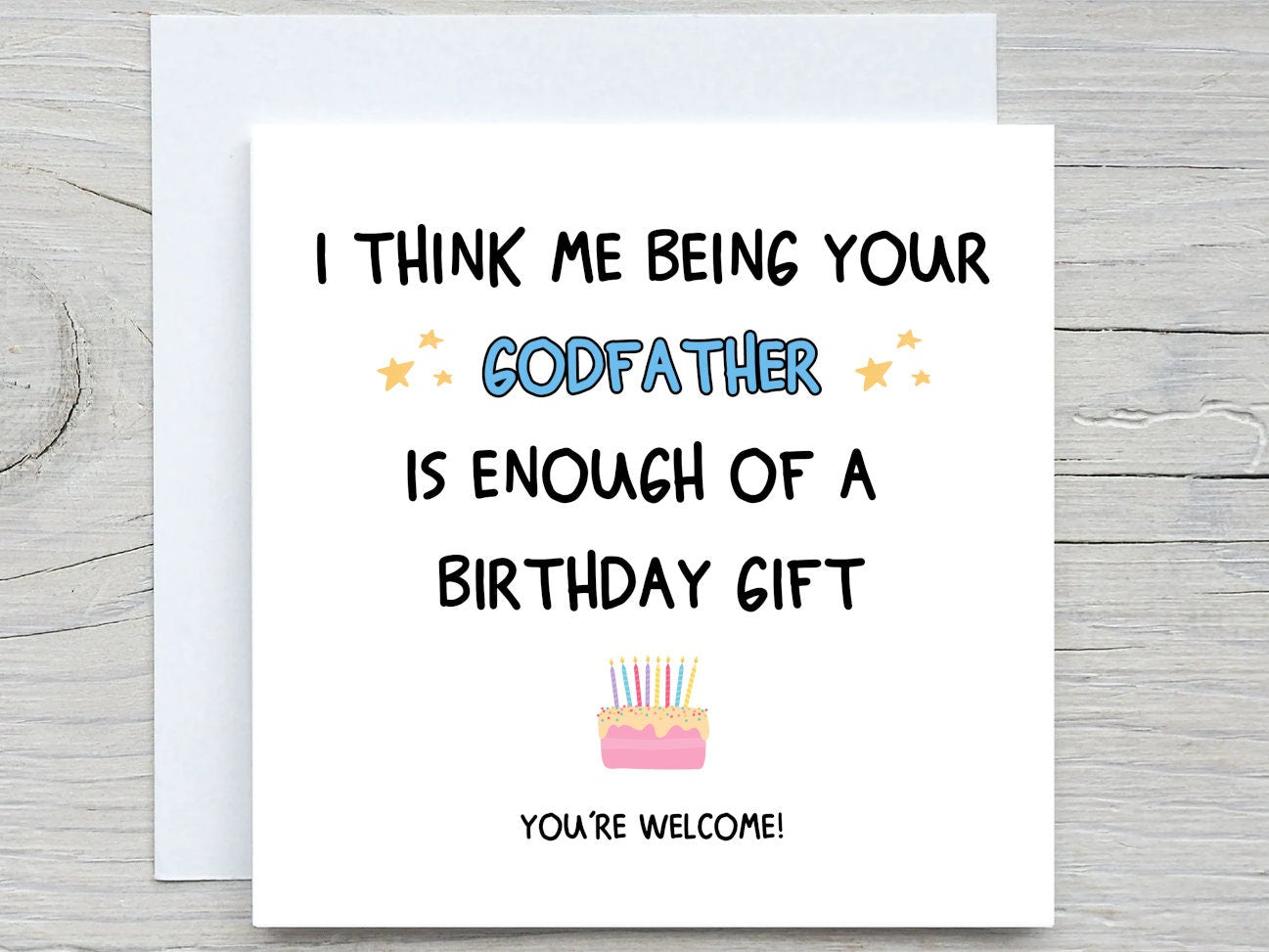 I Think Me Being Your Godfather Enough Of A Birthday Gift , Funny Birthday Card, Goddaughters birthday, godson birthday