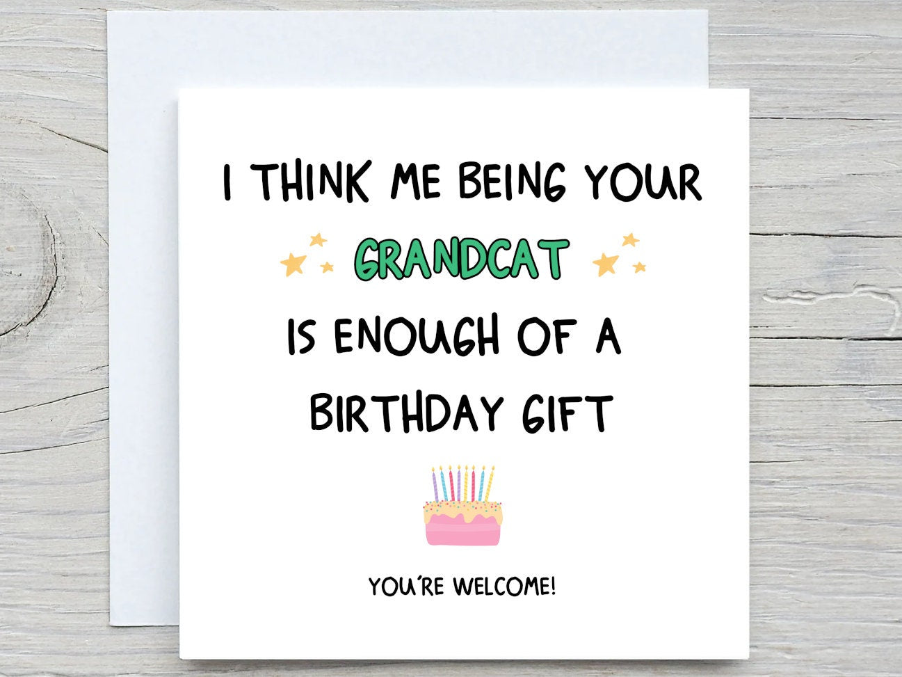 I Think Me Being Your Grandcat Is Enough Of A Birthday Gift , Funny Birthday Card, cat granddad, cat grandmom