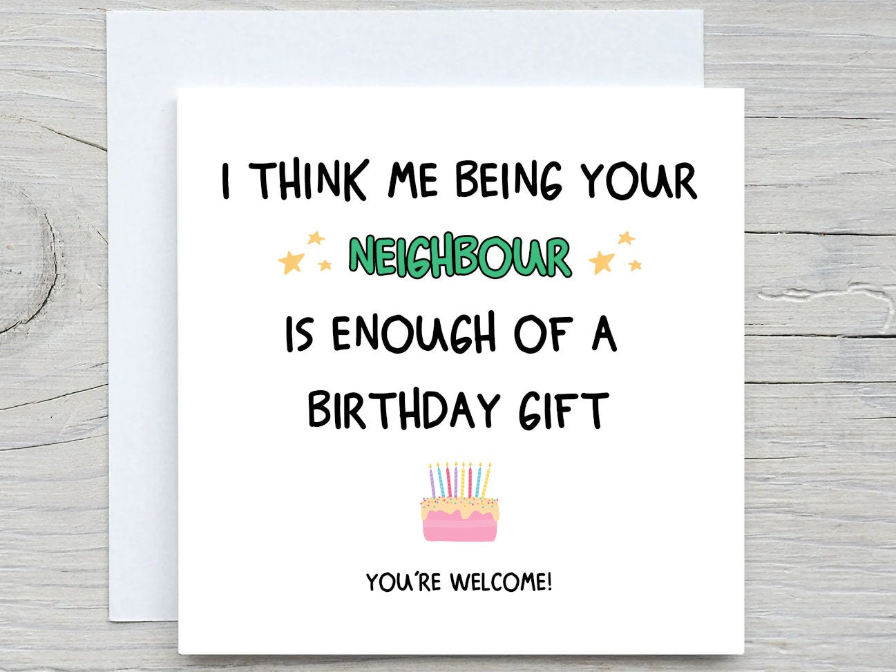 I Think Me Being Your Neighbour Is Enough Of A Birthday Gift , Funny Birthday Card, Neighbours birthday