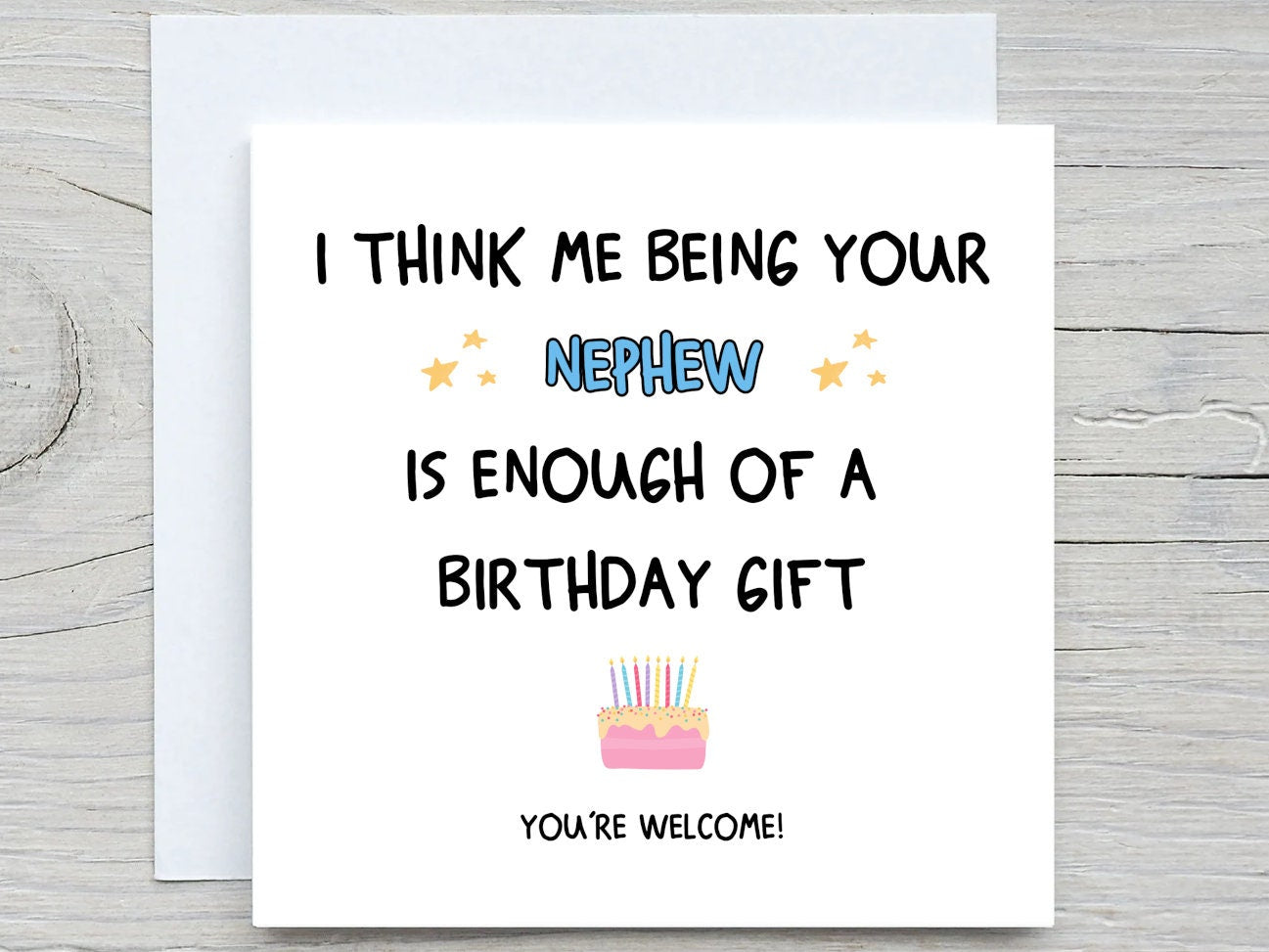 I Think Me Being Your Nephew Is Enough Of A Birthday Gift , Funny Birthday Card, For Aunt card, For Uncles birthday