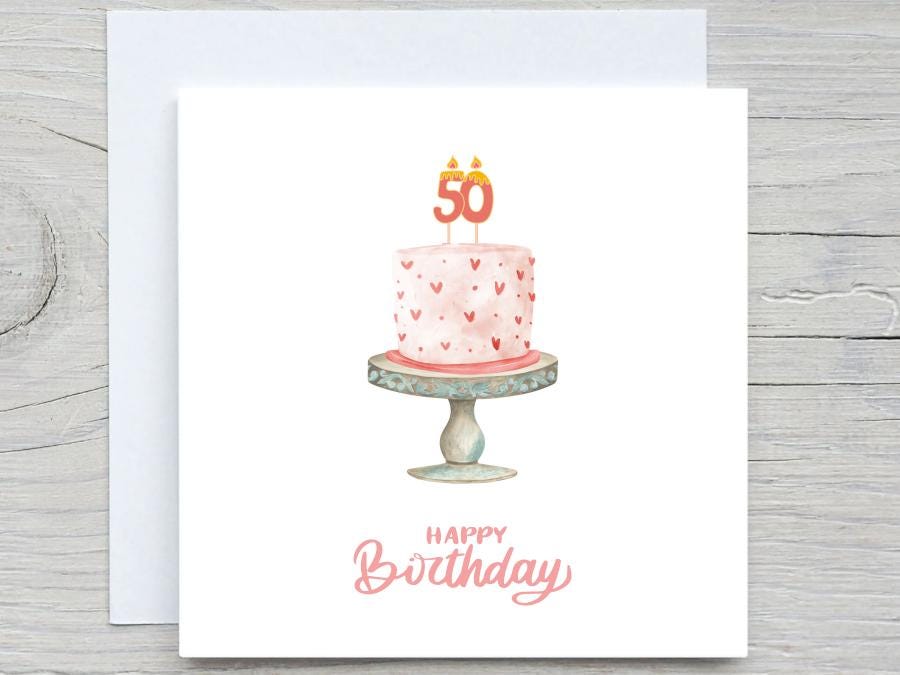 Personalised Birthday Card, 50th birthday card, 50 candle card, Birthday cake card, for her, for wife,for bestie