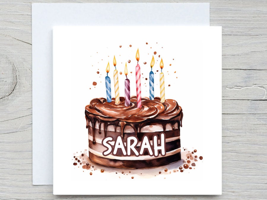 Personalised Birthday Card, Happy Birthday card, Watercolor cake, for friend card, bestie card, Add Name card