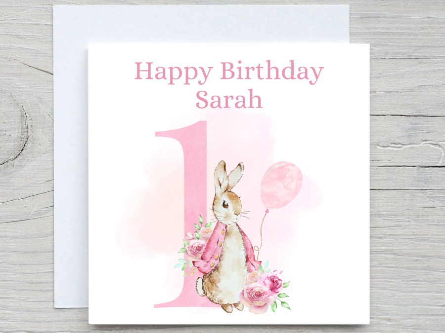 Personalised Initial Birthday Card , First Birthday card, Baby girl Bunny Pink Birthday Card, first birthday card, one year birthday card