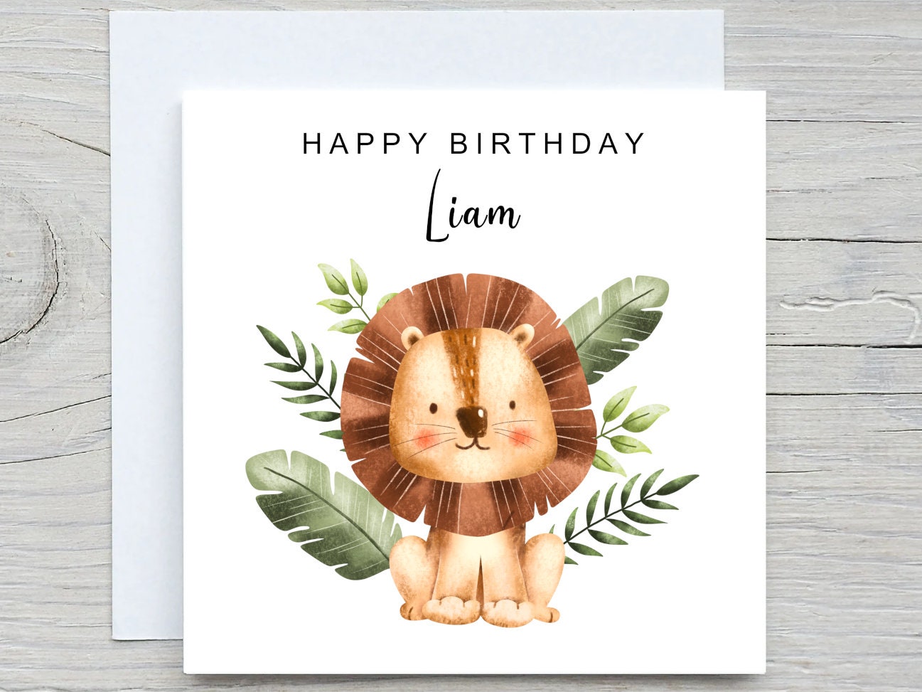 Personalised Name Birthday card, Lion Boy birthday card, Kids birthday card, add name card