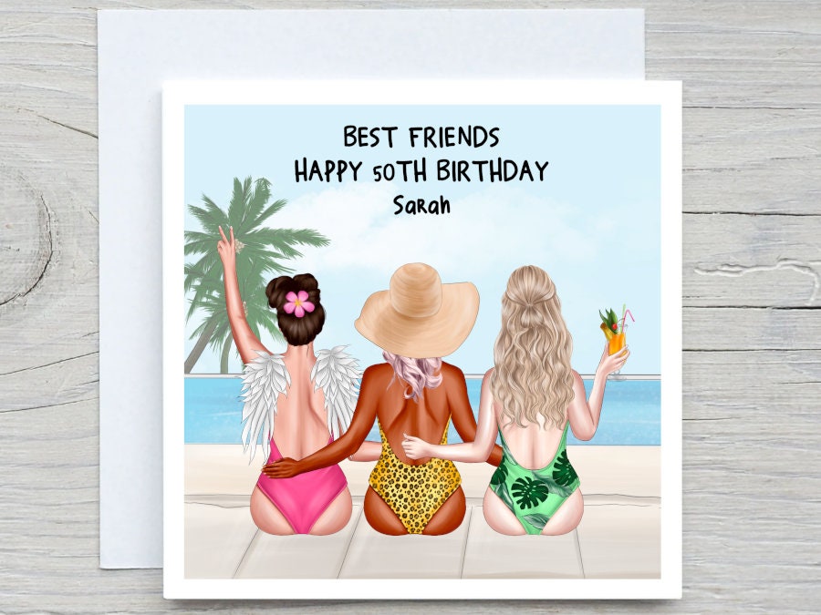 Pool Beach Personalised Best Friend Happy Birthday Handmade Card, Sister Bestie Cousin, personalised Hair Style card, for bestie, sister