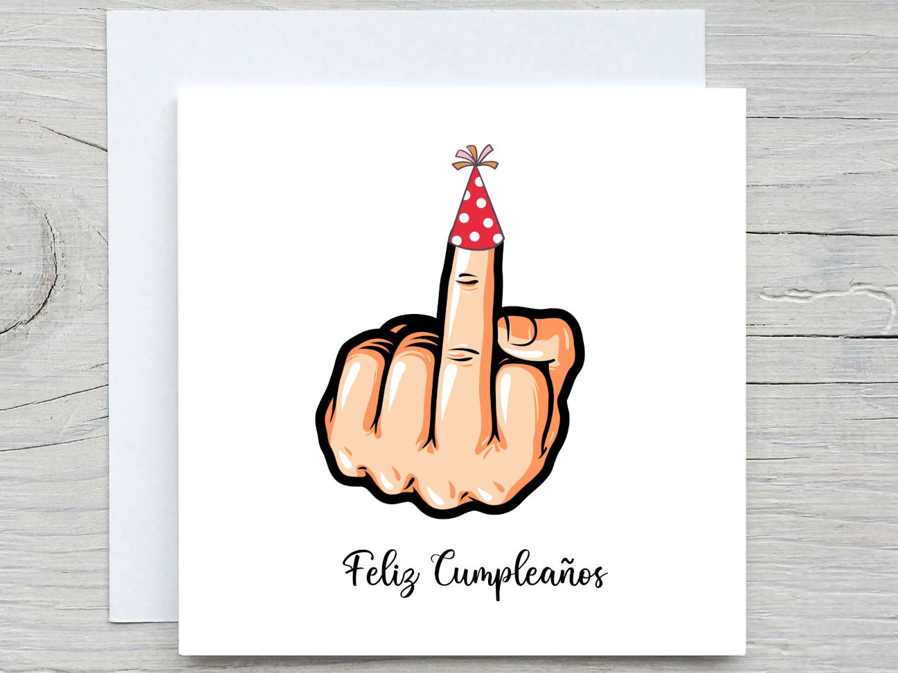 Spanish Rude birthday card, middle finger card, birthday card, personalized card, feliz cumpleaños card, birthday hat card