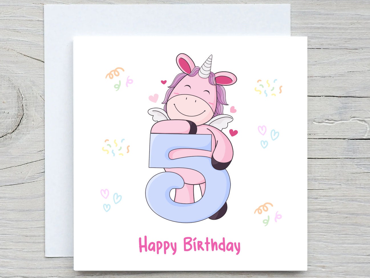 Unicorn Birthday card, 5 years old little girl birthday, personalised Birthday card for daughter, niece, granddaughter