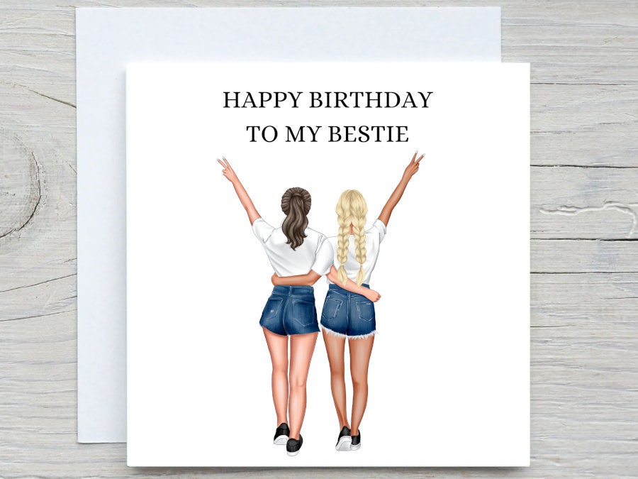 Women's Personalised Best Friend Happy Birthday Handmade Card for her Sister Bestie Cousin, personalised Hair Style card, for bestie, sister