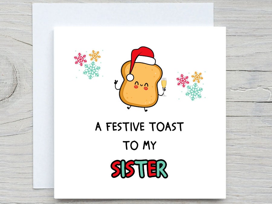 Christmas card, Festive toast Card ,to my Sister Christmas card, Christmas gift card, from Brother, Sister christmas gift