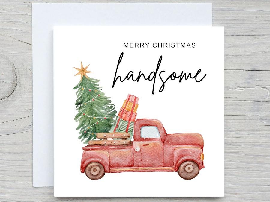 Christmas Card for him , Handsome card, Husband Christmas Card, dad christmas card, Brother christmas card, christmas truck tree card