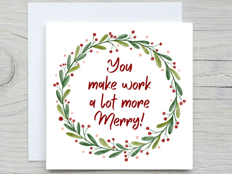 Christmas card, to coworker, you make work Merry ,to my Boss, custom Christmas card, Christmas gift card, from employee, for employer card