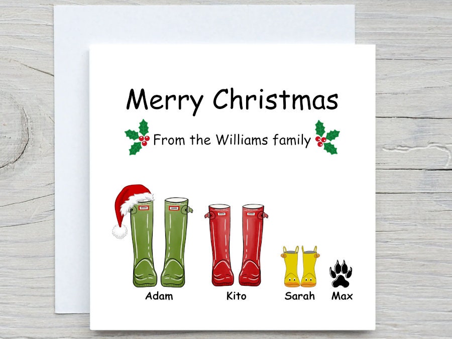 Custom Christmas card, Family Christmas card, Rain Boots card, Add Name Christmas Custom Card, Family members card, Merry Christmas Family