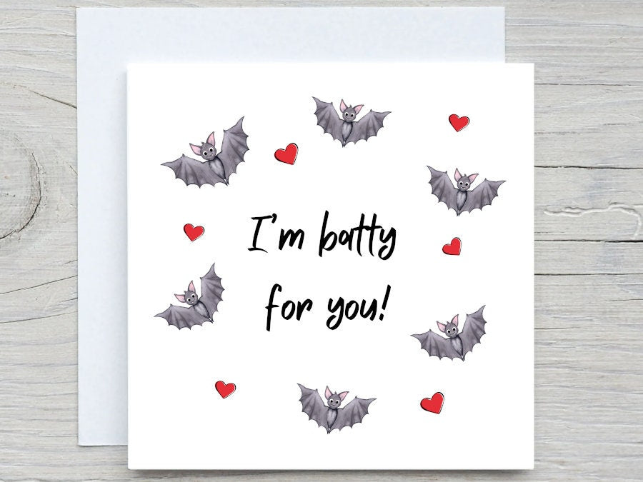 Happy Halloween card, Cute Bat Card, Personalised cards, I'm Batty for you, romantic halloween card