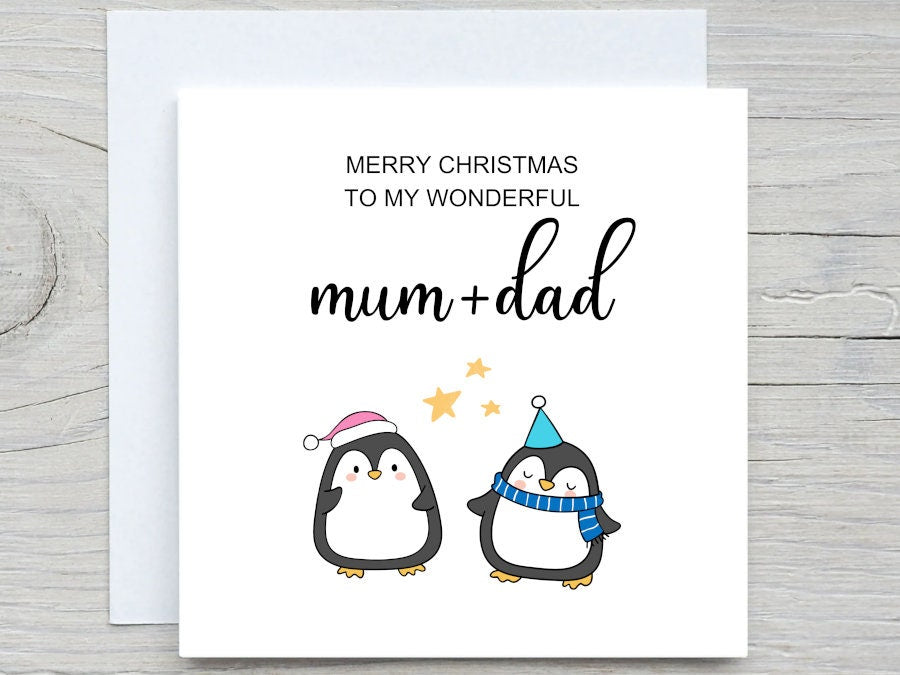Mum And Dad Christmas Card, Penguin Christmas Card For Mum And Dad, Christmas Poem Card, Personalised Christmas Card For Parents, Xmas