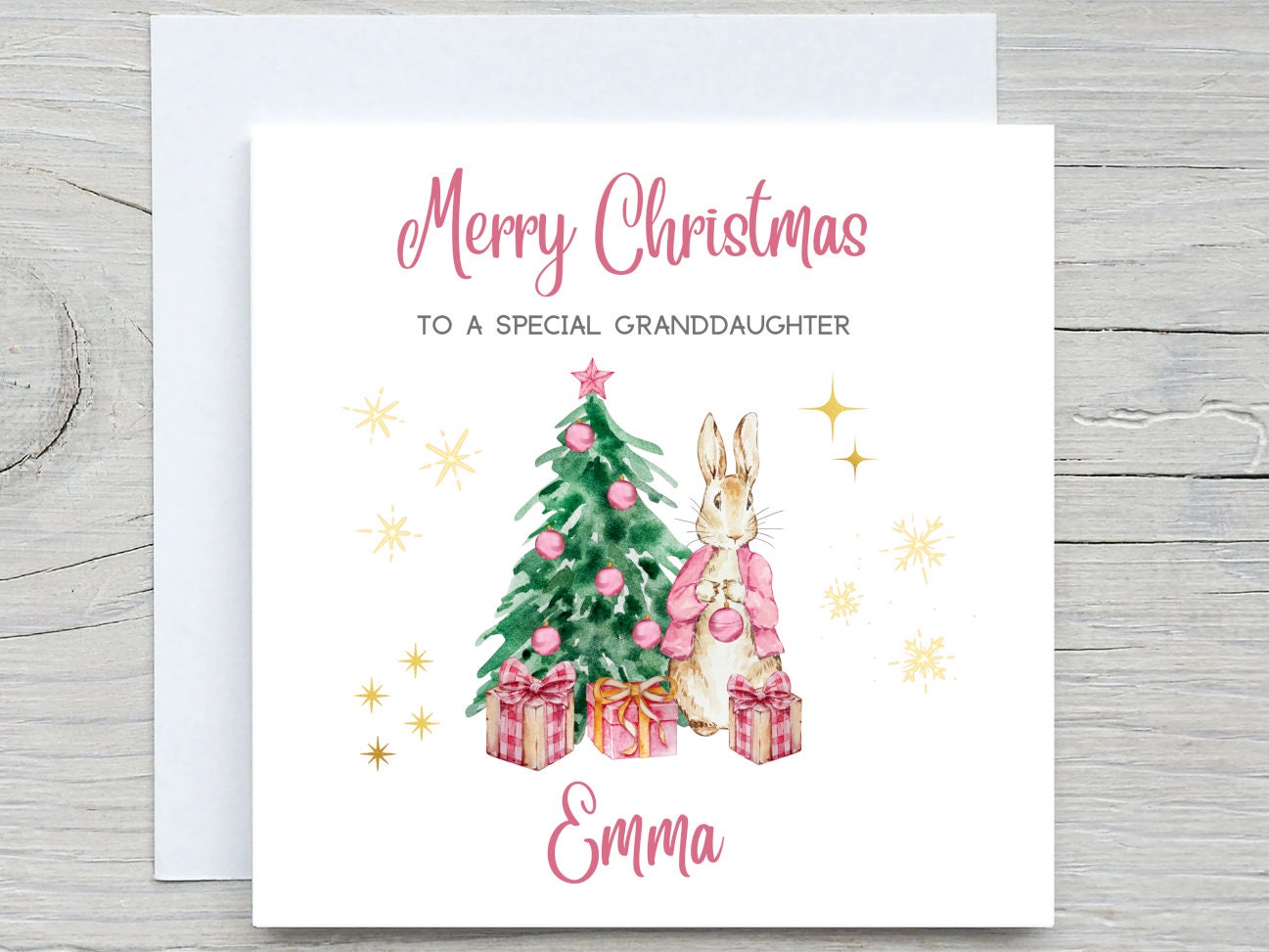 Personalised Christmas Birthday , Baby girl Bunny Rabbit Pink Christmas Card