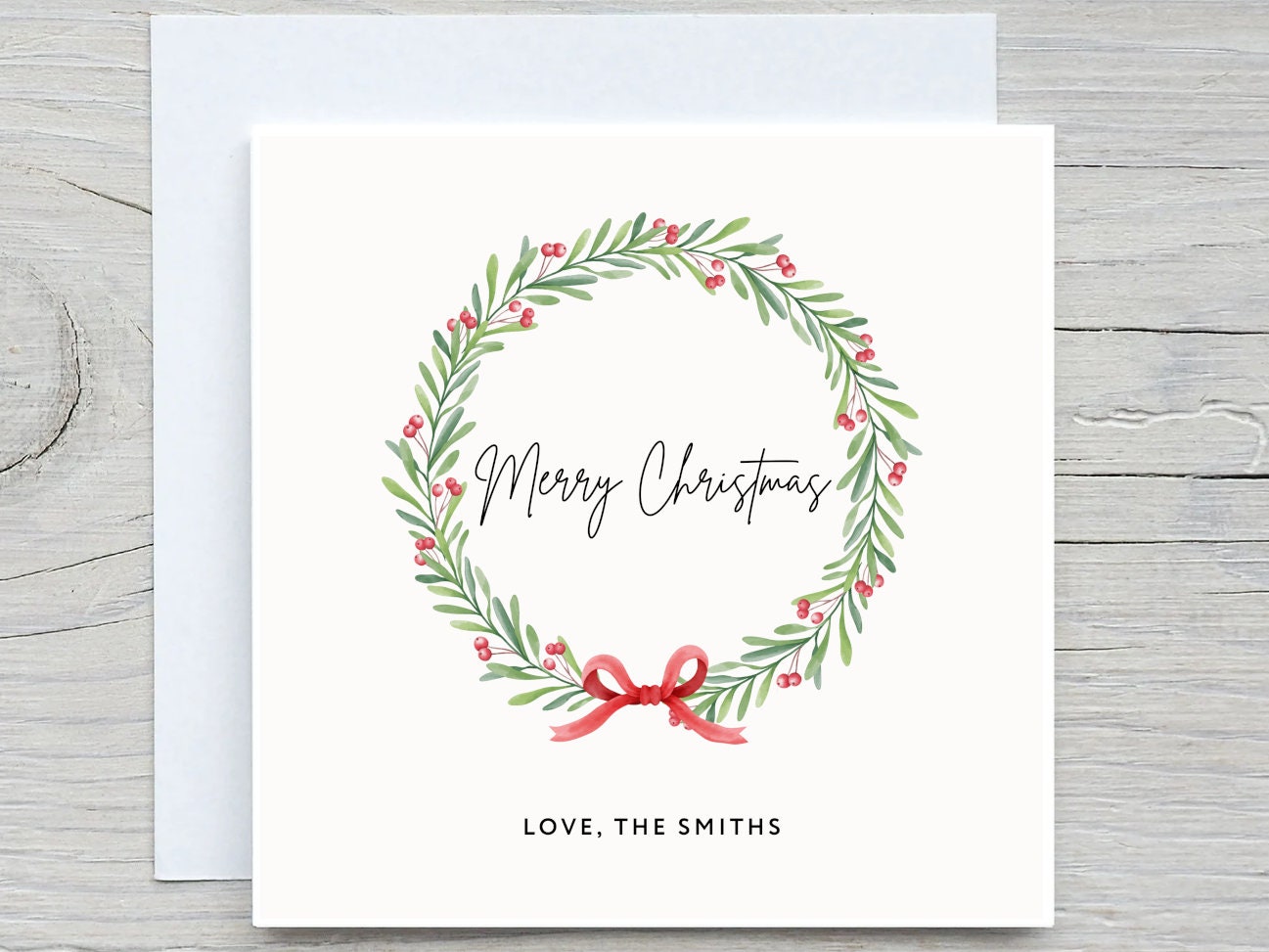 Personalised Christmas card, Christmas Wreath card, Holidays card, personalized card,