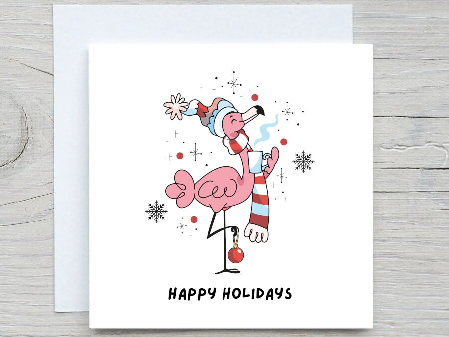 Personalised Christmas card, Funny Flamingo, Holidays card, personalized card, Hoppy Christmas card, Merry Christmas card, happy holidays