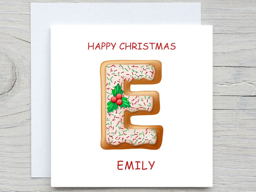 Personalised Christmas Card, Gingerbread COOKIE letter name card, Add name Holiday card, Merry christmas card, Ginger Cookie card