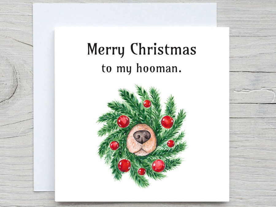 Personalised Christmas card, Merry charismas from dog, from pet holiday card, to my hooman, to dog owner, for her, for him