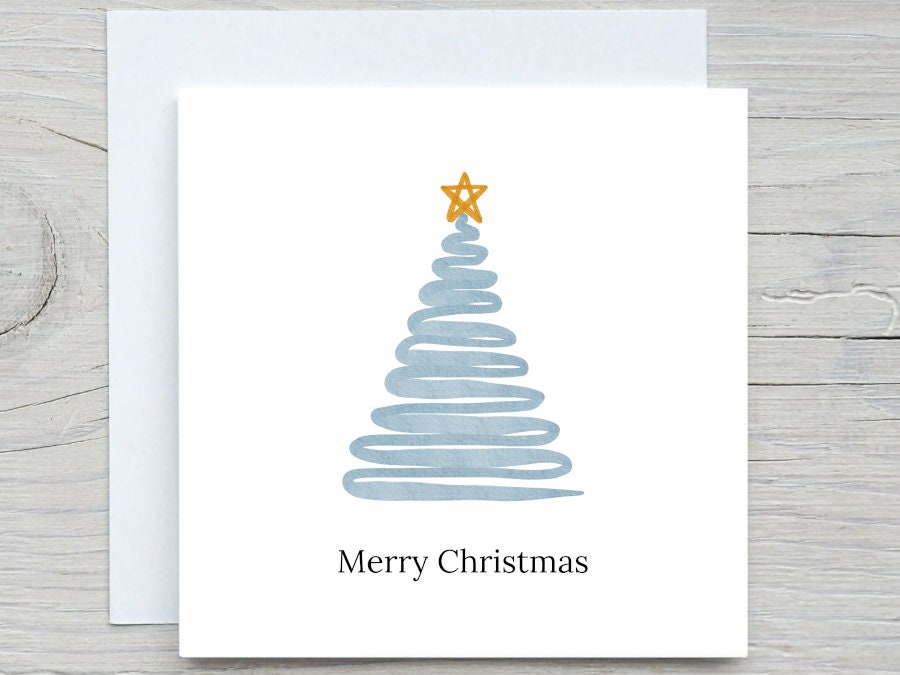 Personalised Christmas card, Merry christmas, Blue Christmas Trees card, Christmas gift for her, for him, merry christmas card