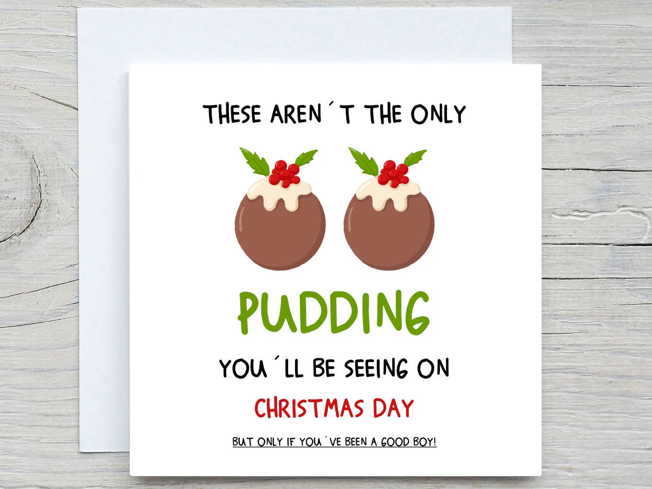 Personalised Christmas card, Merry christmas card, adult christmas card, Xmas Pudding Boob Pun, Sassy christmas card