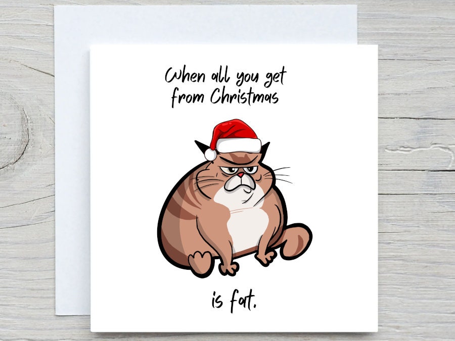 Personalised Christmas card, Merry christmas card, funny christmas card , You get fat, Fat Cat card, Funny Holiday card