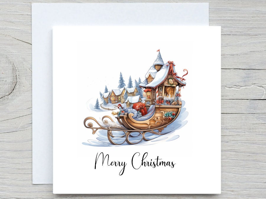 Personalised Christmas card, Merry christmas, Holiday card, santa sleigh, christmas card