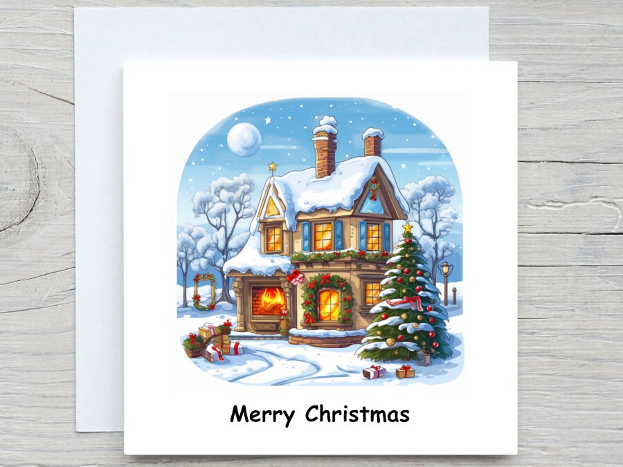 Personalised Christmas card, Merry christmas, Holiday card, Winter Scene, christmas card