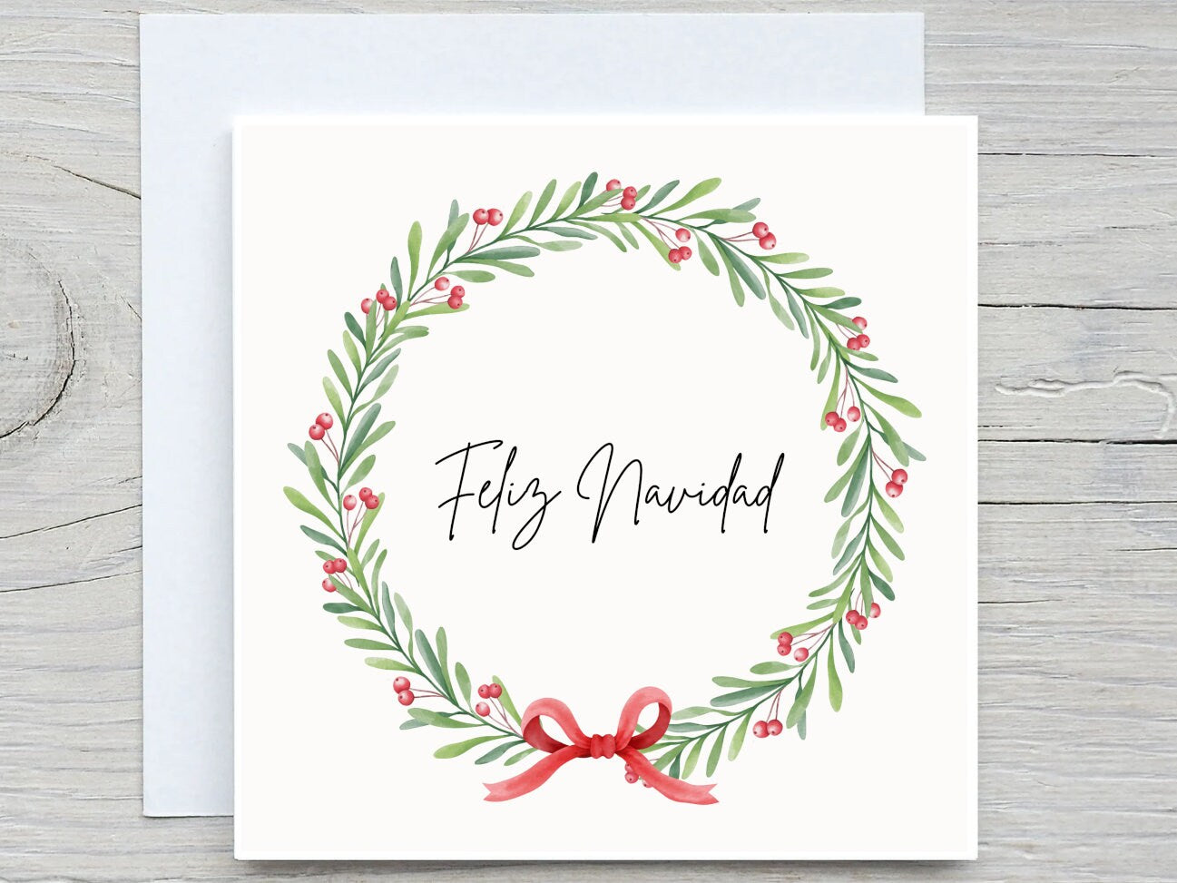 Personalised Christmas card, Spanish Merry christmas, Christmas Wreath card, christmas card in Spanish, feliz navidad