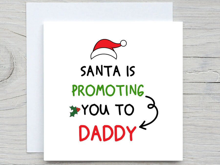 Pregnancy announcement card, Christmas pregnancy card, Santa promoting you to a daddy, for husband card, Christmas Card, I am pregnant card