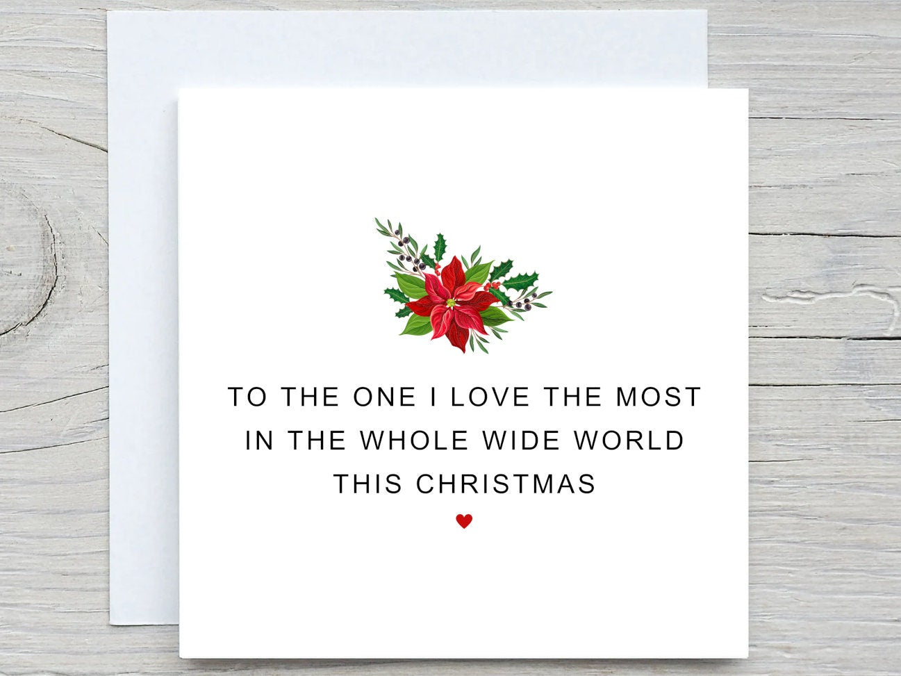Romantic Christmas Card , The one I love the most, Husband Christmas Card, Wife Christmas Card