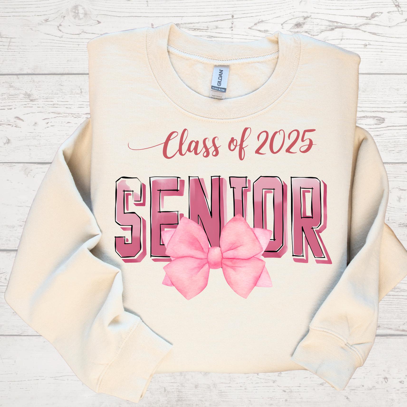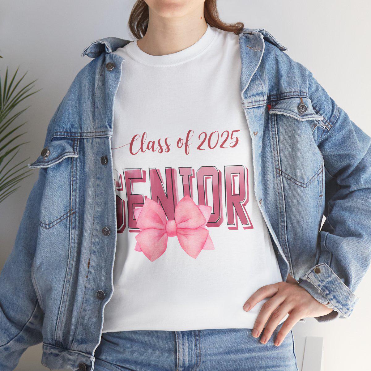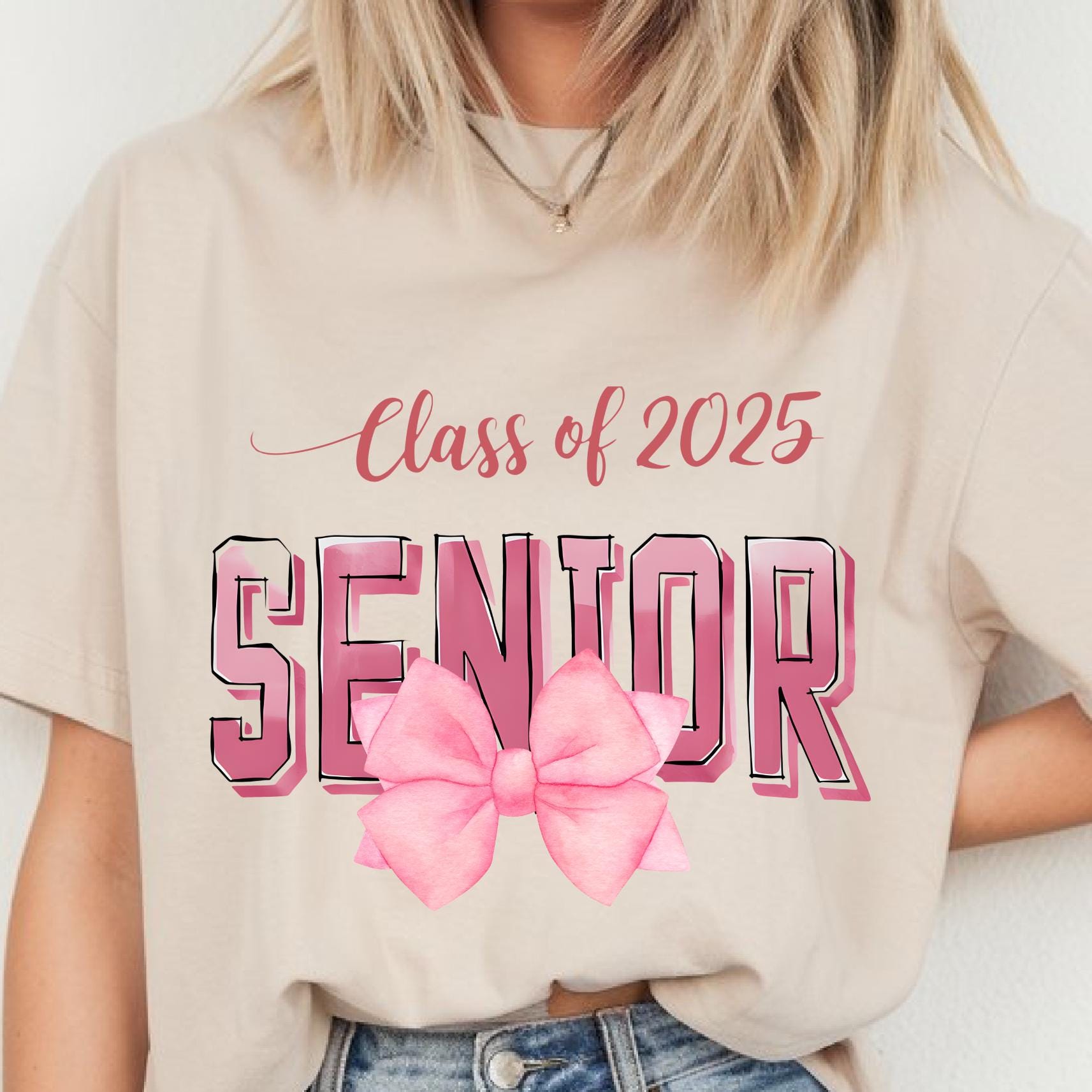 Class of 2025 Senior T-Shirt Cute Pink Bow Graduation Tee Senior Girl T-Shirt Trendy Class Shirt High School Grad Gift Tee