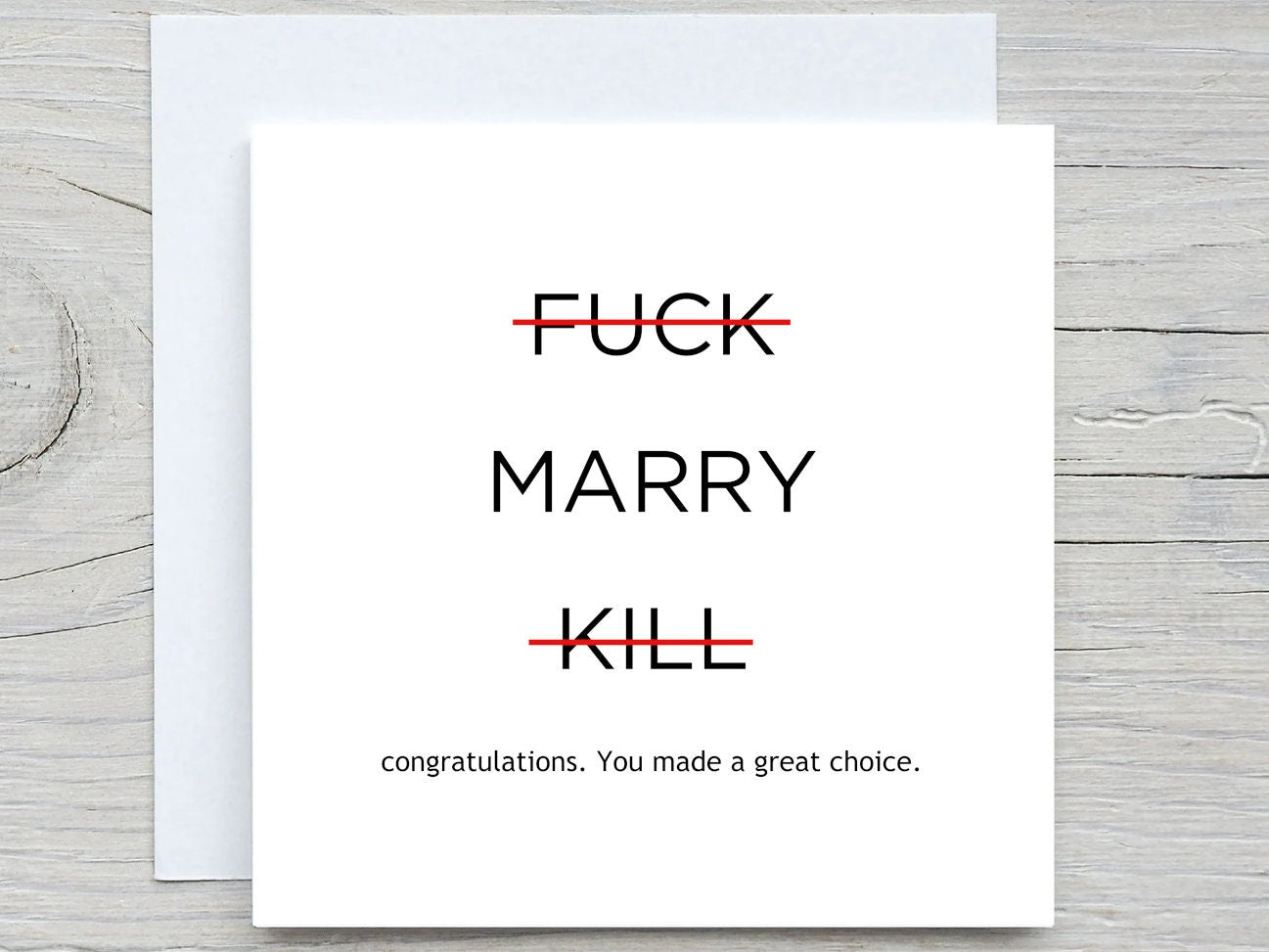 Fuck Marry Kill ,Funny Congratulations Card For Newly Married or Engaged Couple, Wedding Card For Her, Engagement Card For Sister, Cousin