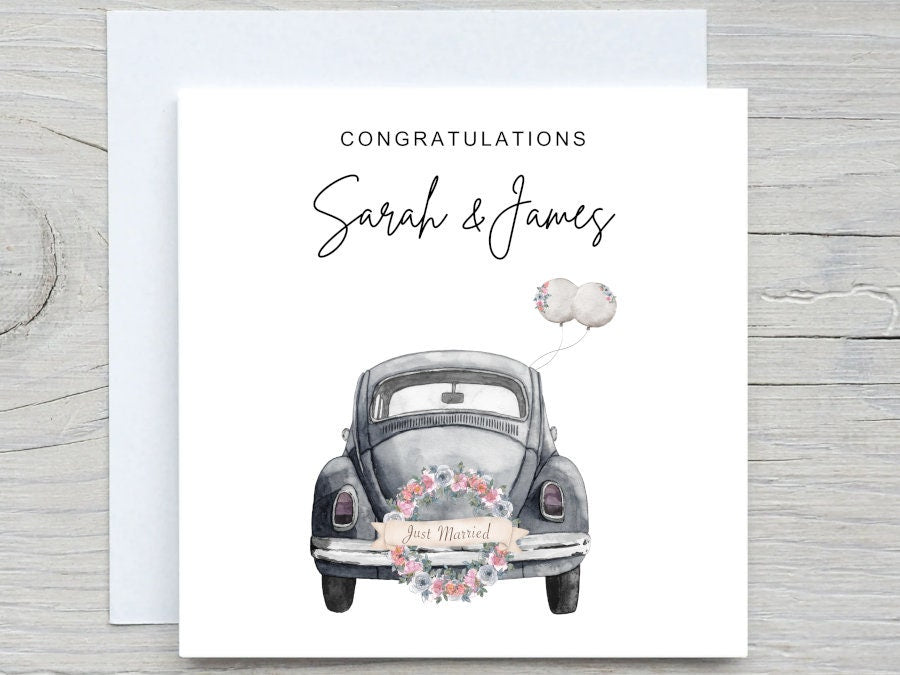 Personalised WEDDING Card, Congratulations card, Just married car, Just married card, congratulations cards, MR MRS card