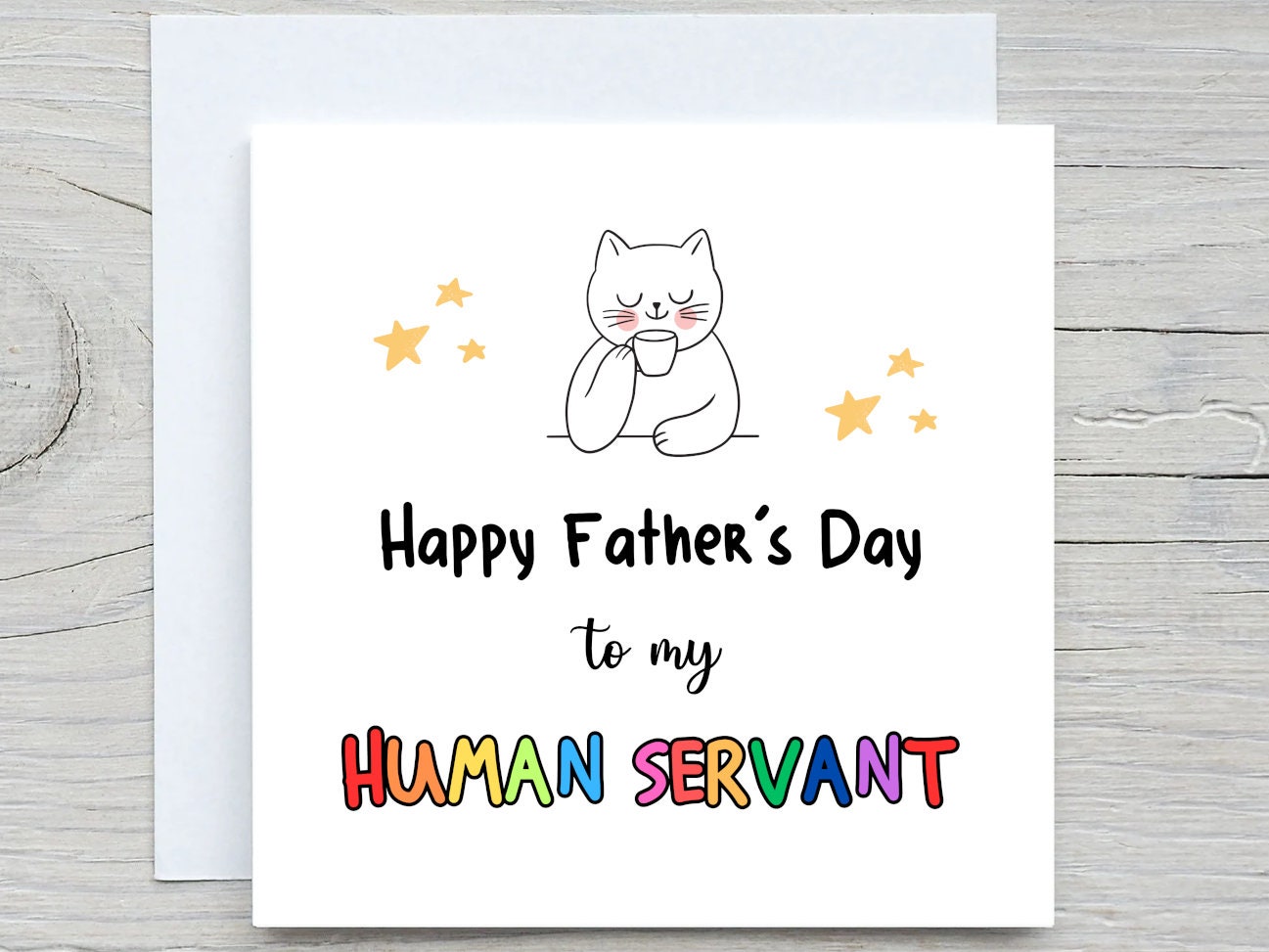 Father's day card, from Cat card, Personalised Father's day card, to my human servant card, from pet