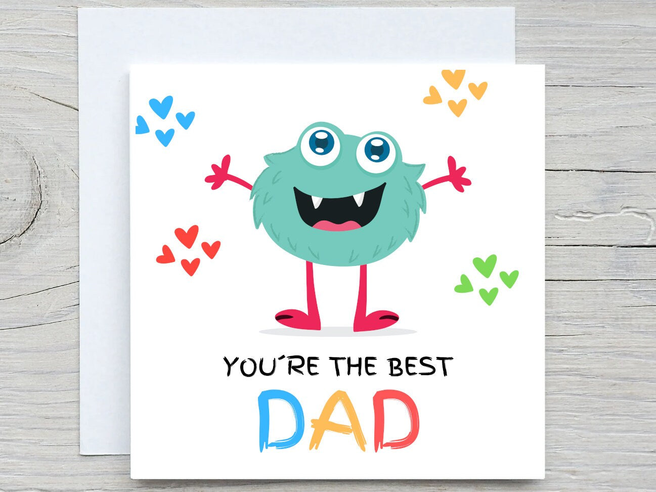 Fathers Day Card, To Daddy card, I love you dad card, happy fathers day, BEST DAD CARD, cute monster card