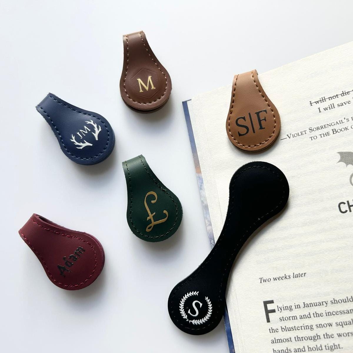 Custom Magnettic Bookmark for him - Personalised Name PU Leather Bookmarks - Fathers day gift,