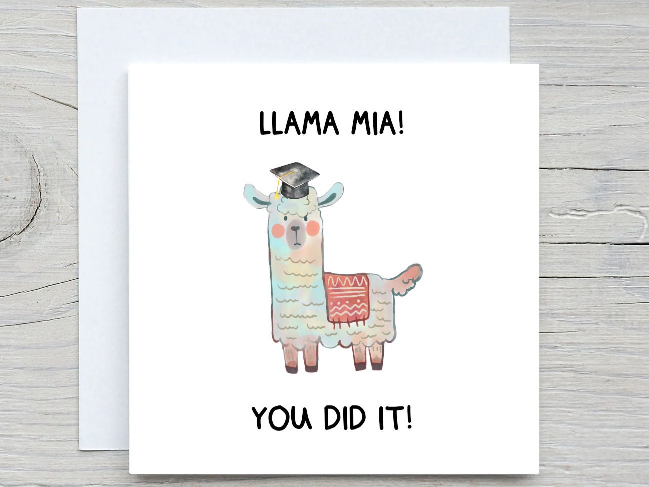 Graduation Card, personalised Graduation card, You Did it card, Happy Graduation Card, Llama mia card,