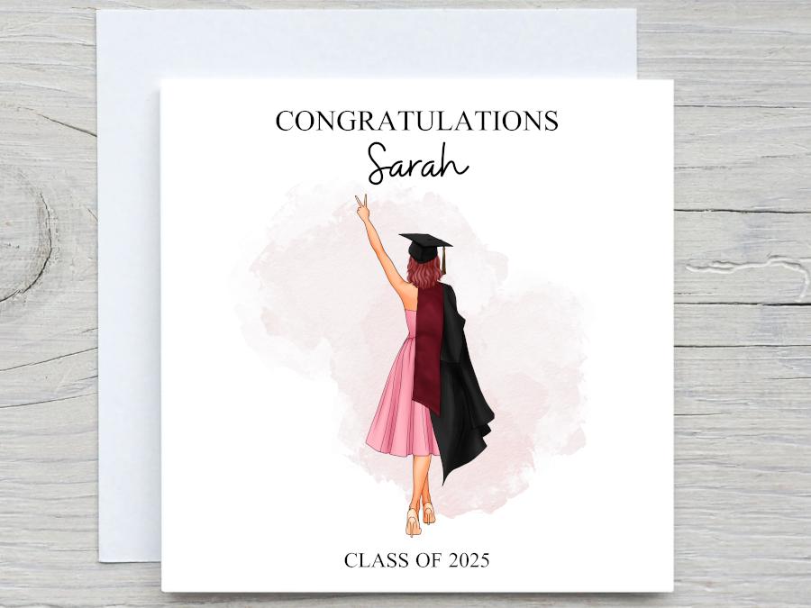 Women's Personalised Graduation card, Handmade Card for her Sister Bestie Cousin, personalised Hair Style card, for bestie, sister