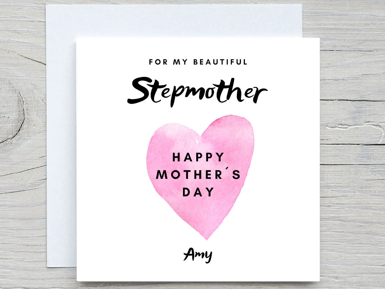 Stepmother Mothers day card, Pink Heart, for stepmother card, from stepdaughter card, mothers day card
