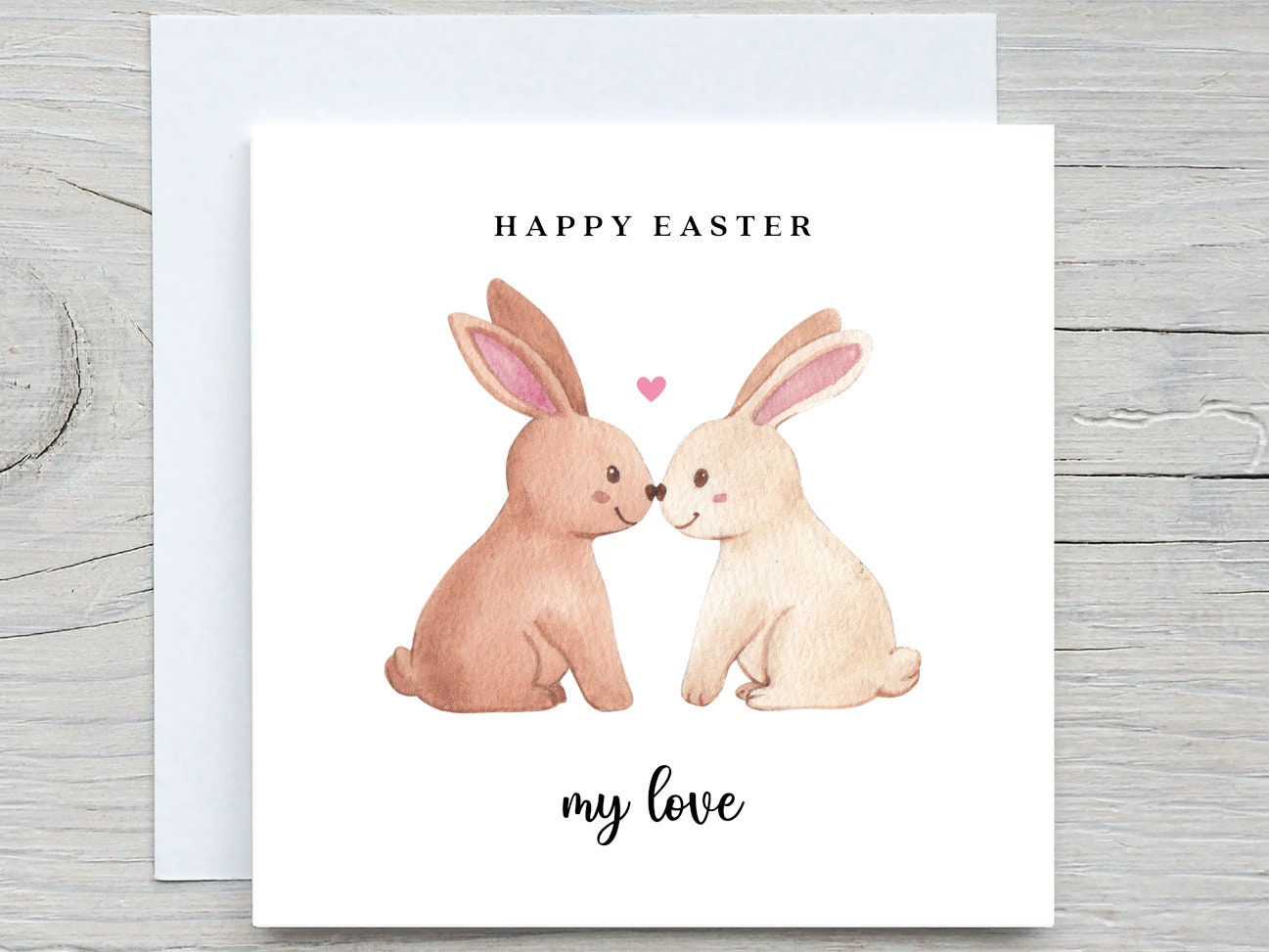 personalised Easter card, Easter card, Bunny card, Rabbit card, HAPPY EASTER my love, 2 rabbits in love card