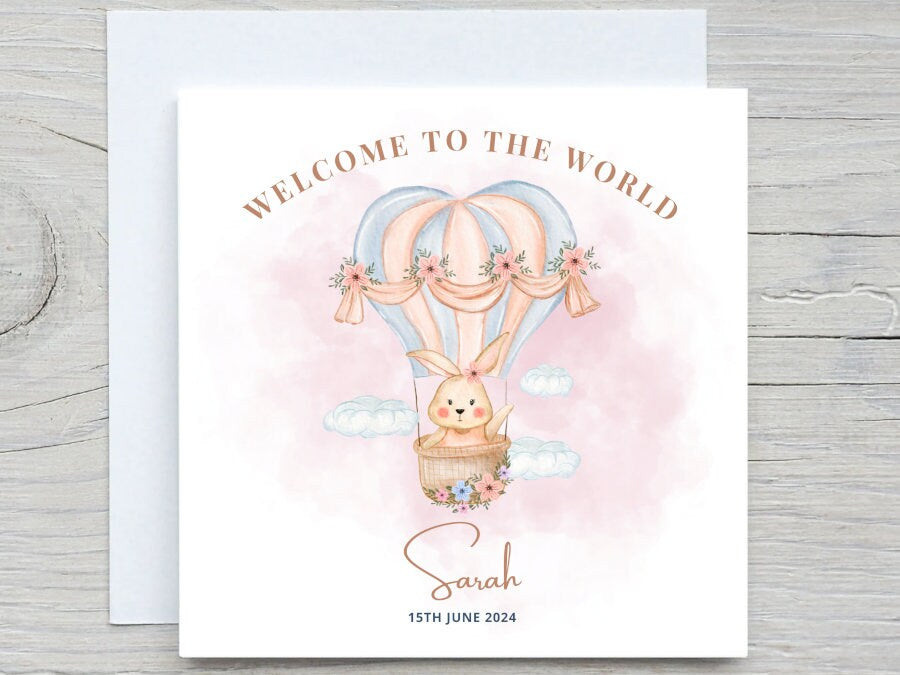 Personalised Baby girl Newborn Card , Baby Girl Rabbit Birthday Card, Welcome to the world, baby shower card
